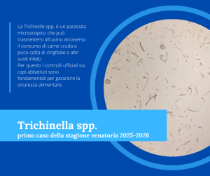 L’esame per la ricerca di Trichinella spp. è obbligatorio per tutti i cinghiali destinati al consumo umano, sia privato sia commerciale e rappresenta uno strumento essenziale per garantire la sicurezza alimentare e la prevenzione delle zoonosi. La Trichinella è un parassita trasmissibile all’uomo attraverso il consumo di carne cruda o poco cotta proveniente da animali parassitati appartenenti alle specie di suidi ed equidi sia domestici sia selvatici non sottoposti a controllo.