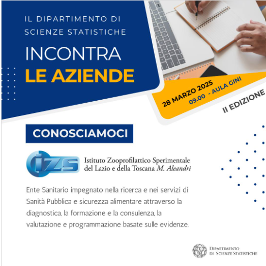 Il Dipartimento di Scienze Statistiche della Sapienza incontra le aziende, IZS Lazio e Toscana incontra i giovani